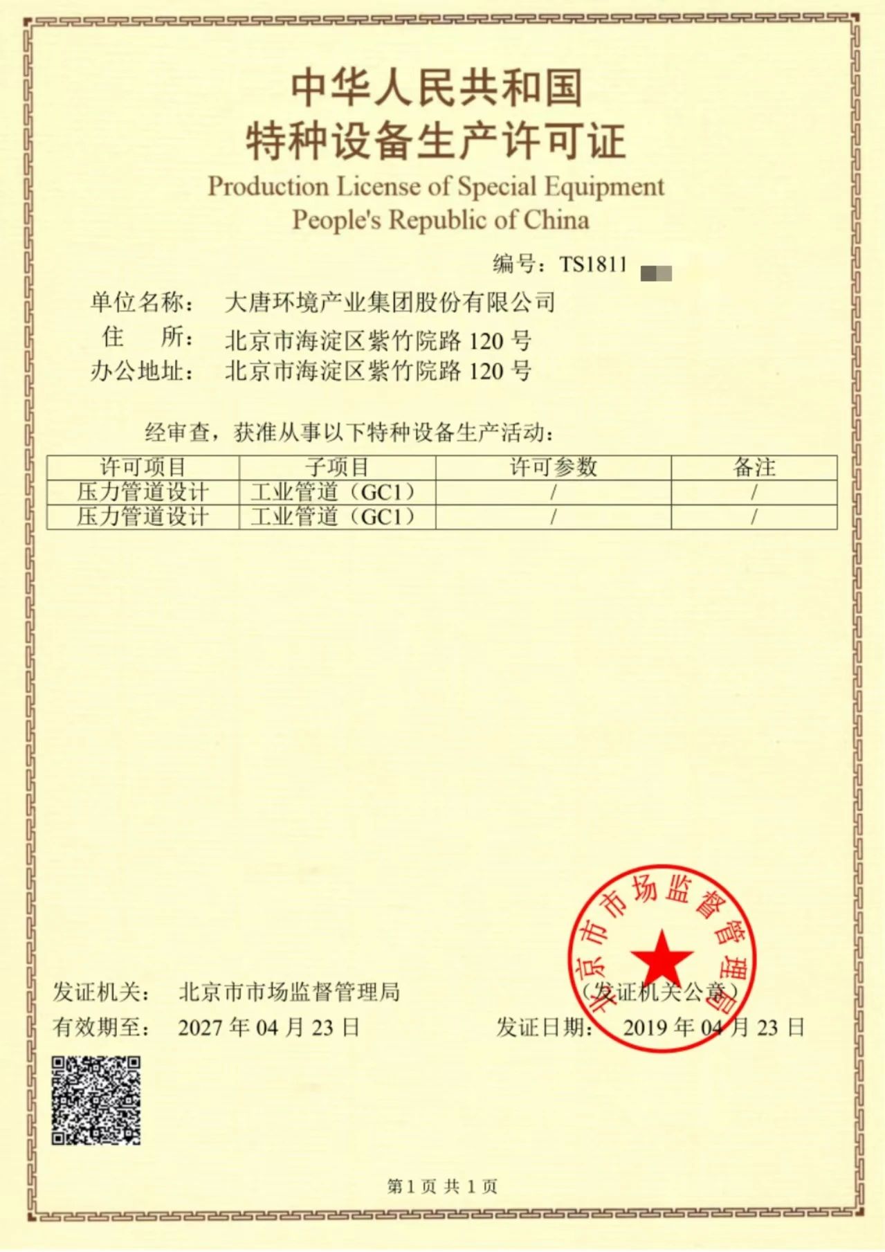 特种设备生产许可证-压力管道设计(GC1)资质,作为环保工程专业领域中的高级别资质,赋予了环保分公司承担包括脱硫、脱硝等复杂环保项目中压力管道设计的重任。本次资质升级和申报工作由环保分公司市场开发部牵头,高效协调各方资源,充分发挥团队的专业优势和协作精神,为公司资质升级和申报工作的顺利推进提供了有力保障。此次资质的晋升,不仅标志着大唐环境可承接特种设备生产许可证-压力管道设计(GC1)环保工程的设计和施工,更为公司后续投标、承揽业务奠定了坚实的基础,极大的提升了环境公司在环保工程业务的市场领域规模和市场竞争力。