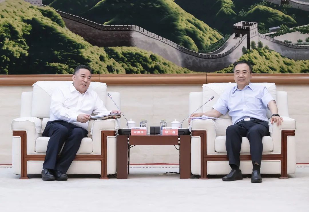 本网讯 8月3日,中国大唐集团有限公司党组书记、董事长邹磊在总部会见了中国能源建设股份有限公司党委书记、董事长宋海良,双方围绕深化全面战略合作伙伴关系、推进能源电力产业高质量发展进行深入友好交流,并共同见证中国大唐与中国能建战略合作协议签约。