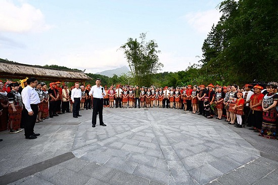 4月10日至13日,中共中央总书记、国家主席、中央军委主席习近平在海南考察。这是11日下午,习近平在五指山市水满乡毛纳村,同当地干部群众亲切交谈。新华社记者 李学仁 摄
