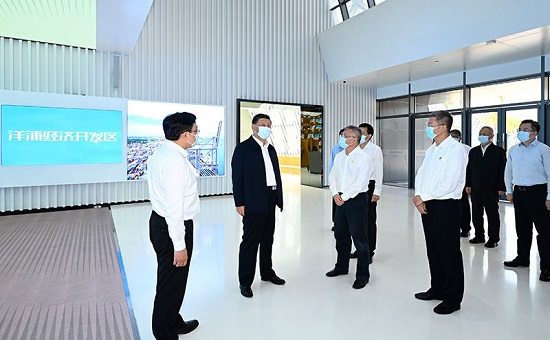 4月10日至13日,中共中央总书记、国家主席、中央军委主席习近平在海南考察。这是12日上午,习近平在洋浦经济开发区考察。新华社记者 李学仁 摄