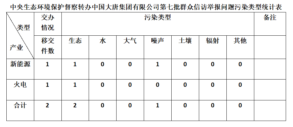 2025年6月10日,中央第七生态环境保护督察组向中国大唐集团有限公司移交第七批群众信访举报件,共计2件,均为来电举报,涉及噪声问题1个、生态问题2个。所有举报件办理工作已第一时间进入调查核实办理程序,办理情况将按照相关要求反馈督察组,并及时向社会公开。