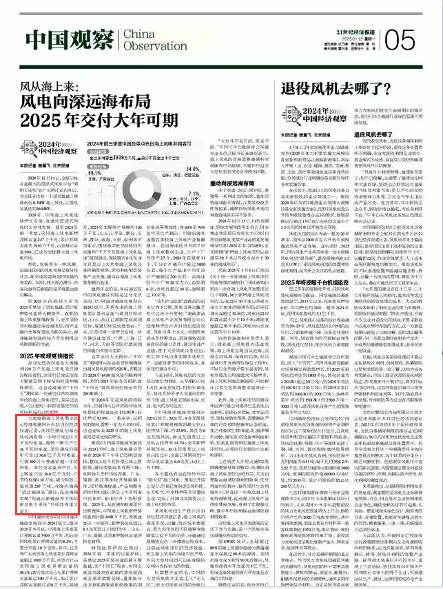 [21世纪经济报]风从海上来:风电向深远海布局,2025年交付大年可期
