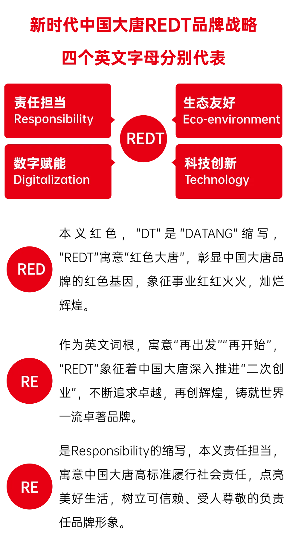 本网讯  1月7日,中国大唐集团有限公司在京举办“能动世界 共享美好”品牌建设推进会暨REDT品牌战略发布会,正式向社会发布REDT品牌基因、战略目标、理念体系、品牌形象等,明确了“世界一流能源供应商”品牌定位,“能动世界、共享美好”品牌口号,“卓越、创新、责任、温暖”品牌个性,“惟实惟新、共创共享”品牌价值主张。